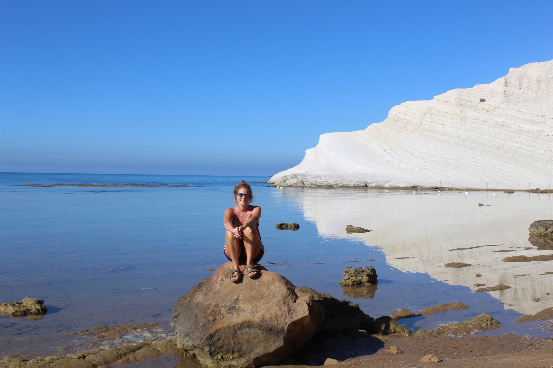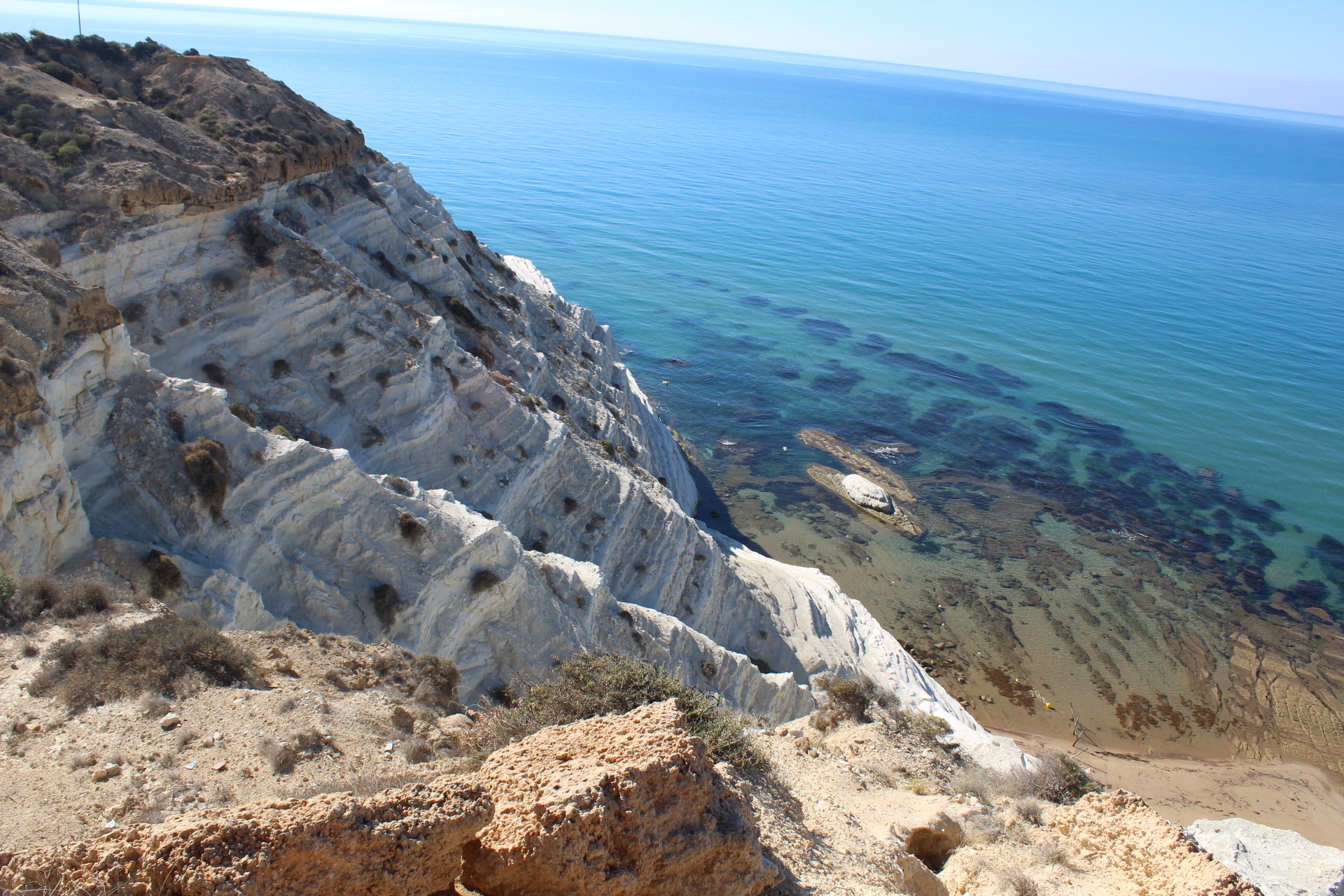 We took Big Blue slightly off road to get to Punta Bianca beach. A unique place with a white rocky cliff, clear turquoise waters and views up and down the coast. It’s quite hard to get to so it’s not as busy as the Turkish steps making it a perfect place for van life.